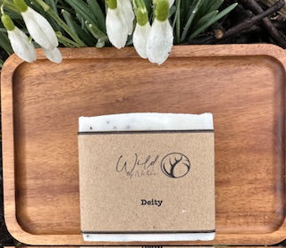 Deity is a luxurious tallow-based soap crafted with a sophisticated blend of grapefruit, bergamot, and jasmine essential oils. Infused with poppy seeds for gentle exfoliation, this artisanal bar cleanses and softens skin while delivering a captivating citrus-floral aroma. Perfect for a daily ritual that feels indulgent and grounding.